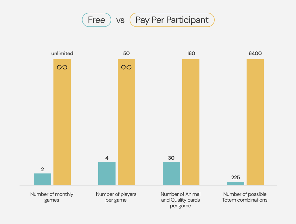 Our Totem cards are designed to strengthen caring relationships with positive statements that encourage players to speak from their heart. With Totem Participation Credits, access 160 Animal and Quality cards and inspire your colleagues to express what they appreciate about each other.